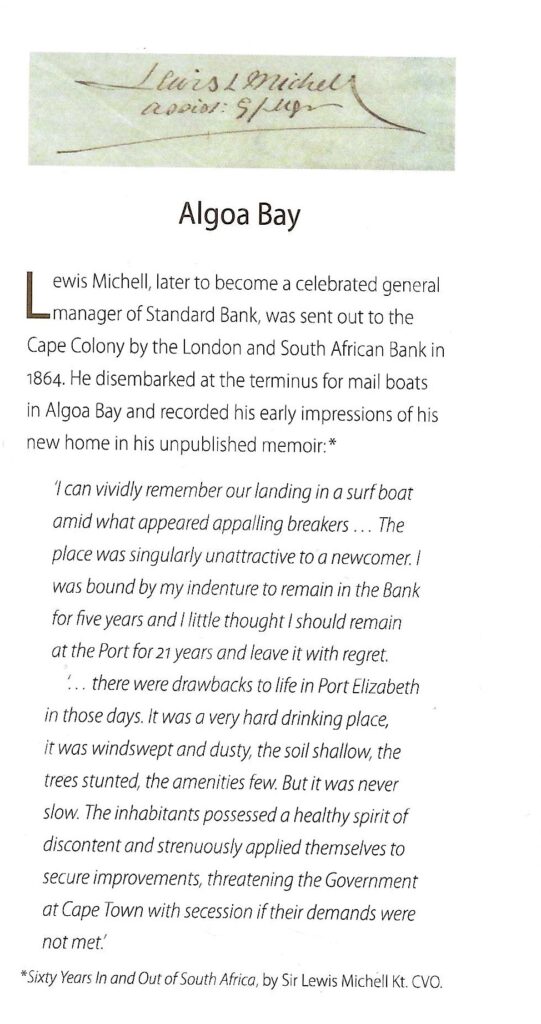 The roots of two of South Africa’s largest banks today viz the Standard Bank and First National Bank, the successor to the Orient Bank, can both claim Port Elizabeth as their initial home