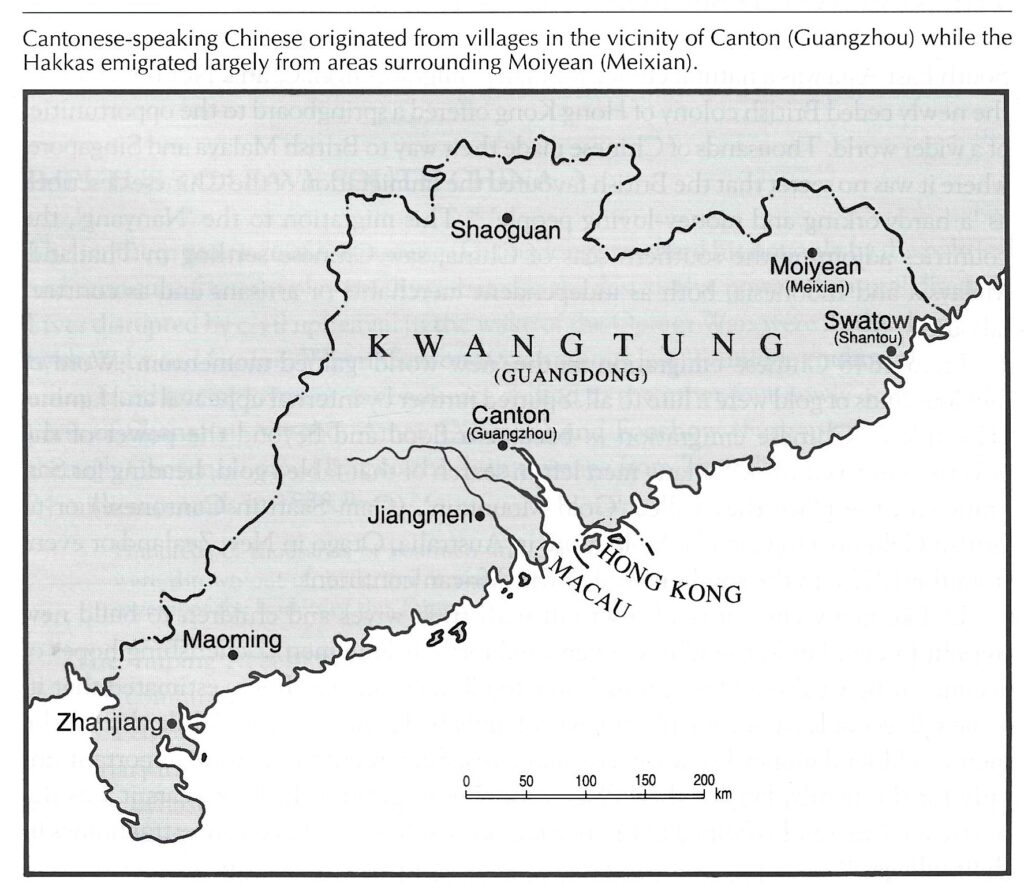 In the late 19th century, the Chinese Community was bolstered by independent immigrants, primarily from Guangdong Province i.e. Canton seeking opportunities during the diamond and gold rushes. The community became uniquely characterised by a high concentration of Moi-Yeanese [Hakka-speaking} people from the Meixian district,distinguishing them from the largely Cantonese-speaking populations in other cities.