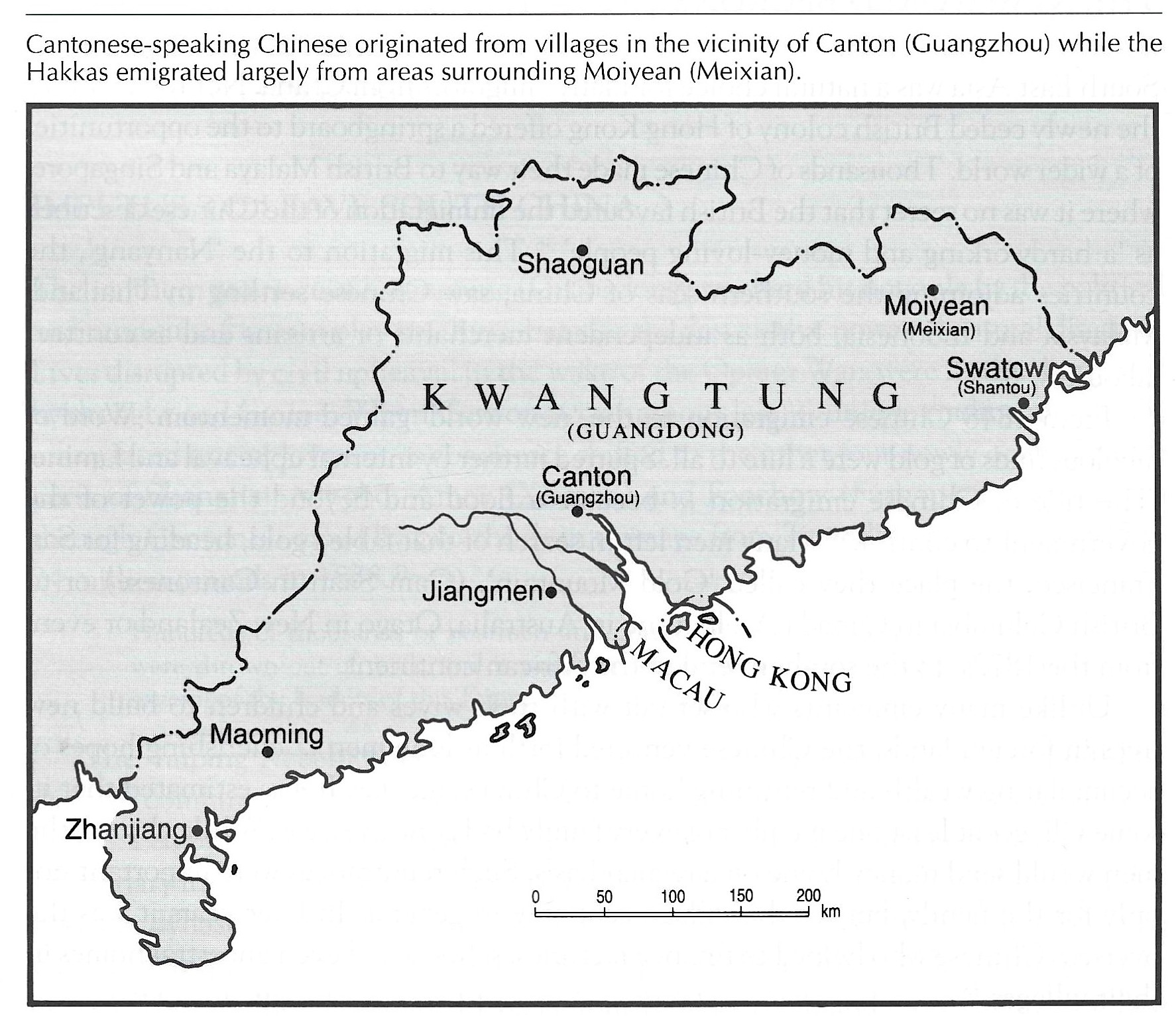 The Moi Yean people have lived in the Meixian (Moi Yean) district of the north of Kwangtung (or Canton) province for centuries, but originate from the northern provinces of China and form a distinct linguistic community from the Cantonese. The Moi Yeanese are also called Hakka, but this is now generally regarded as a derogatory term.